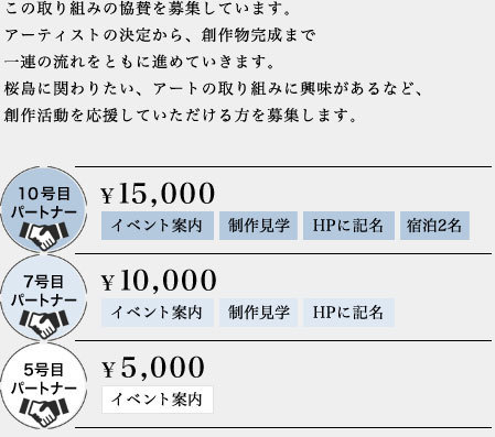 ・駐車スペース数台分無償提供 ・作品やリサーチ・活動内容を、弊団体のHP等での公表へご協力をお願いしています。