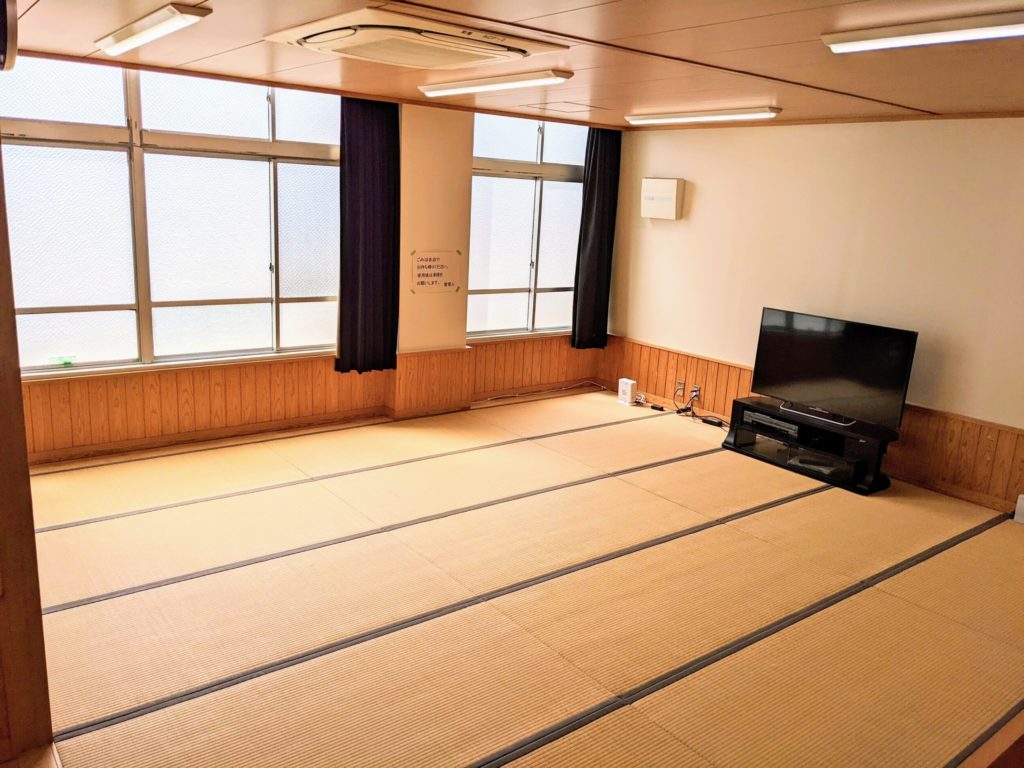 人数は50名ほど入る、施設で一番広い部屋です。冷暖房も完備。