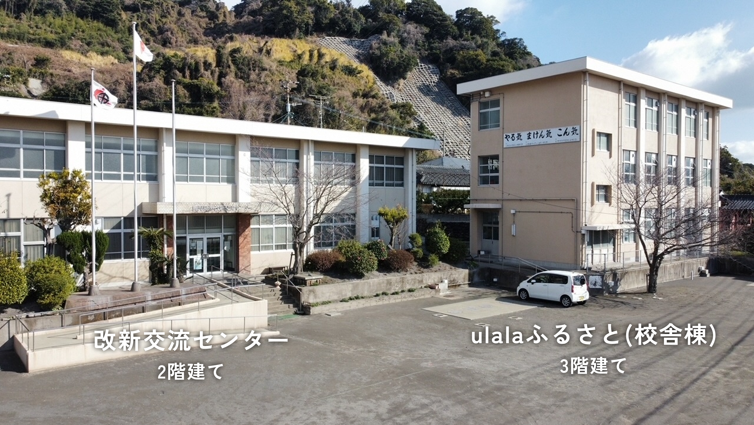 右のulalaふるさと(校舎棟)は、小学校のぬくもりを残した、プライベートに使える空間です。