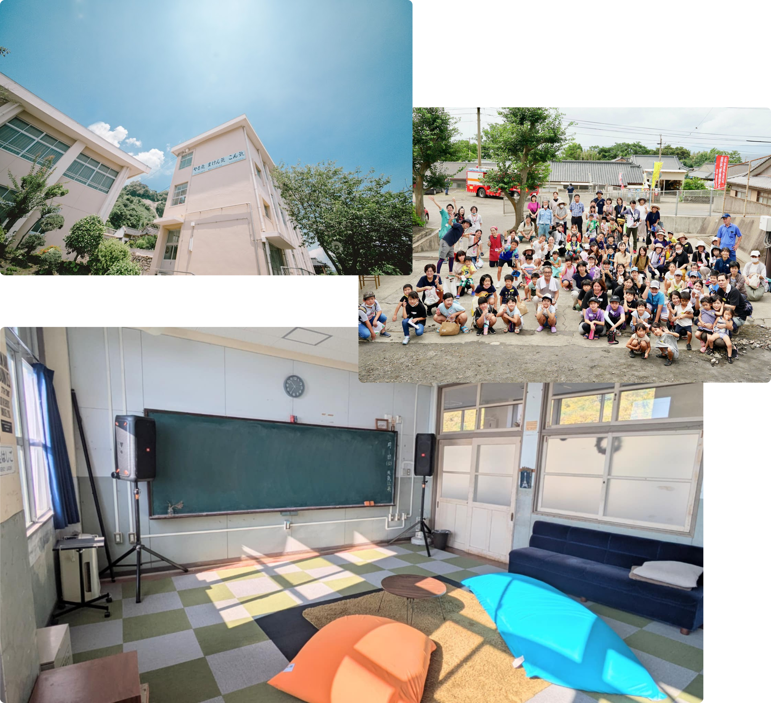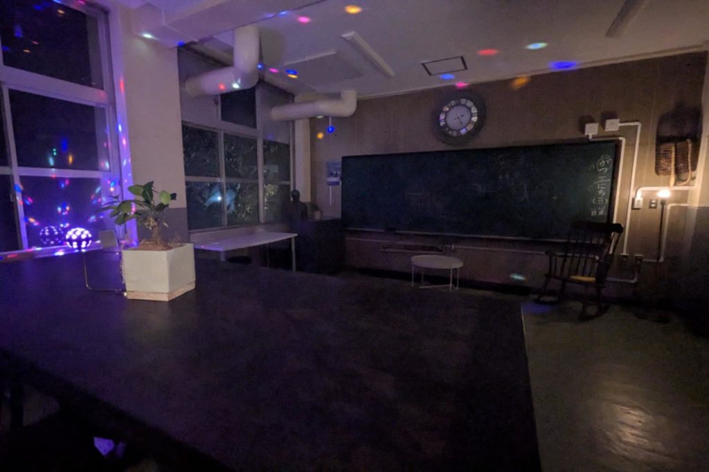 夜の廃校で遊んでみませんか?音響機器、飲食スペース、プロジェクター・スクリーンなどを設備しているので、みんなで楽しく過ごすことができます。お酒を飲みながらワイワイ、120インチのプロジェクターで好きな動画を見ながらがやがや。非日常空間が良い思い出をつくること間違いなしです。